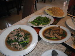 Duck with young Kales 100B. 家鴨の青菜炒め。写真の右手前。