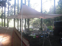 その間にテントを立ててタープを張り、テーブル&椅子を並べコンロを組み立てる。