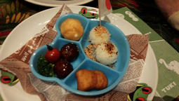 2Fにはショップが少しと、クーポン食堂。靴屋でチビに可愛い柄のインチキ・クロックスを買う。100Baht。これ、アクセサリーにしてリュックに付けても良し。その後でクーポン食堂で昼飯。