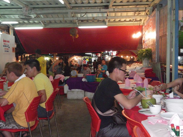 18時、ウラの200通りのシーフード屋が集まっているテントで晩飯。この店は「No.49」というらしい。
