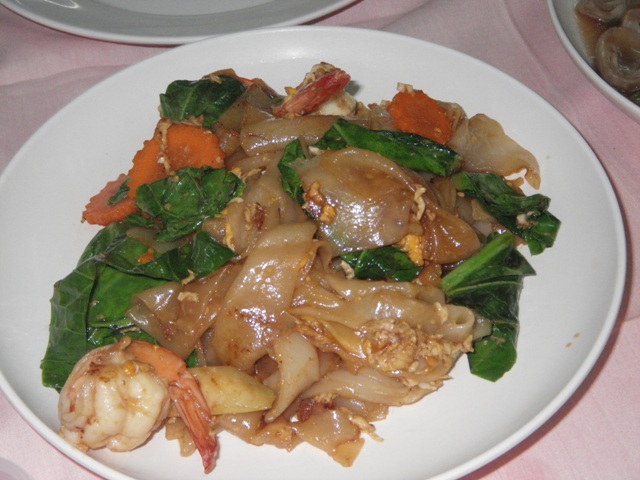 今日の朝飯は幅広麺の焼そば。パッタイ。オイスターソースがきつくなくて旨い。