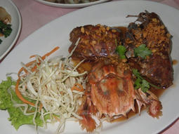 晩飯は少し離れた「ラープペッ ランポー」というイーサン料理屋を目指したが判らず、入った店は「リーアン」というらしいが、ほとんど屋台。