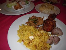 17:40くらいに着いて、まずは18時過ぎからバカでかいブッフェ食堂で晩飯。