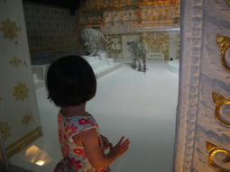 姫がガラス窓にくっ付いて少し奥にいる白い虎を見ていたら、そいつが急に近寄ってきてガラス越しだけどゴッツンコしそうになった。