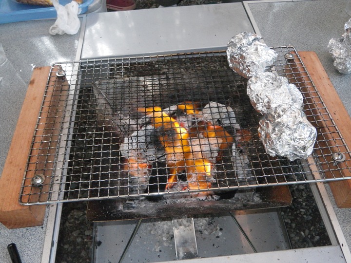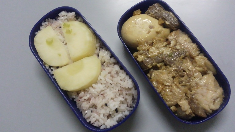 荷を降ろして腰掛けて、買ってきたオニギリを2個食べる。